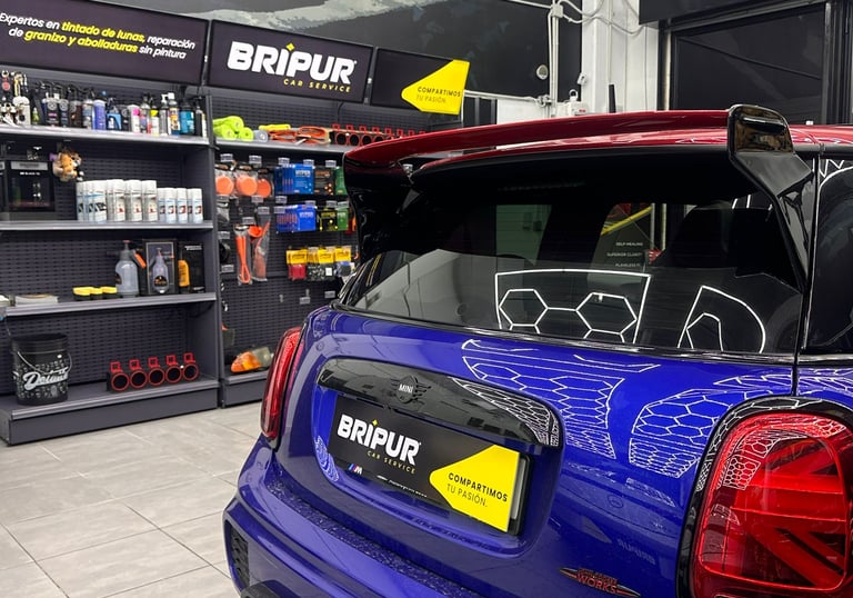 En Bripur Car Service somos especialistas en tintado de lunas profesional con materiales homologados y tecnología nanocerámica de última generación. Disfruta de una conducción más fresca, privada y segura mientras cuidas la estética y el valor de tu vehículo.